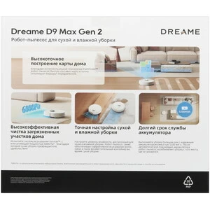 Робот-пылесос Dreame D9 Max Gen 2 белый [уборка - влажная, комбинированная, сухая, Wi-Fi, ограничитель зоны, док-станция, пылесборник - 0.57 л]
