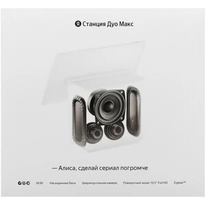 Акустическая система с 4 широкополосными динамиками и сабвуфером мощностью 60 Вт воспроизводит сбалансированный звук. Яндекс.Станция Дуо Макс YNDX-00055BIE поддерживает беспроводные технологии Wi-Fi, Zigbee и Bluetooth. Голосовой помощник Алиса работает с нейросетью YandexGPT. Она способна удерживать контекст из разговора и задавать вопросы, если необходимо уточнение. С помощью Алисы можно включать музыку, слушать сказки, заказывать продукты, вызывать такси, ставить будильник. Мультимедийный контент из сервисов Яндекс, Букмейт, Кинопоиск доступен при активной подписке Плюс.